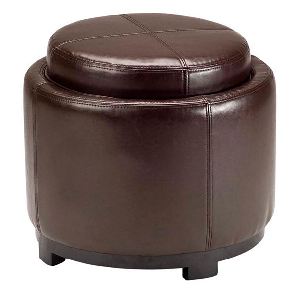 Buy inspired by bassett augusta eco leather round storage ottoman with brass color nail head trim and deep espresso legs cream.