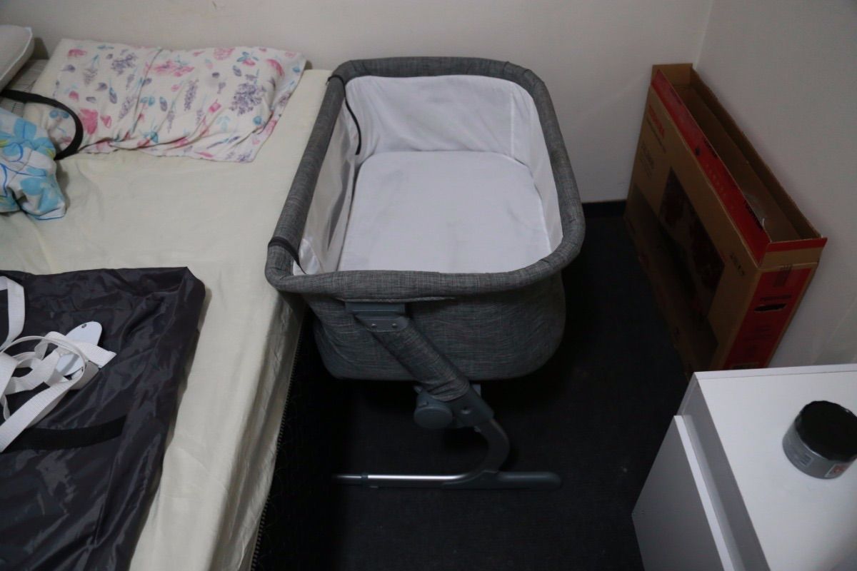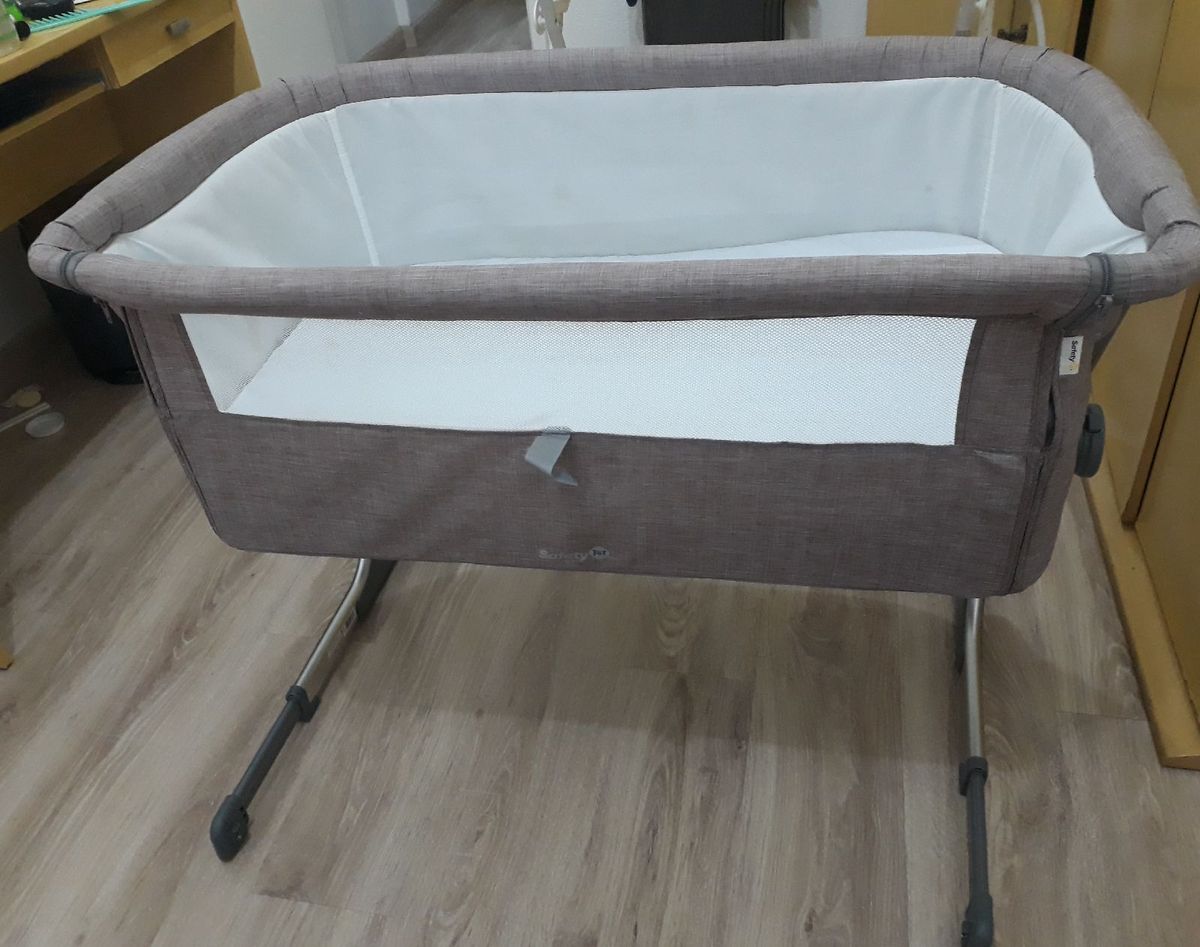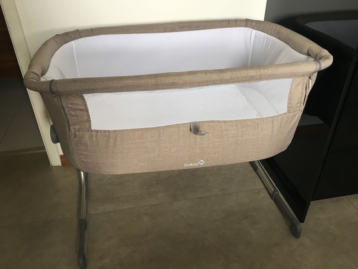 O berço side by side da safety 1st pode ser usado como um berço portátil ou acoplado à cama dos pais assim fica mais fácil para a mamãe amamentar a observar os filhos.