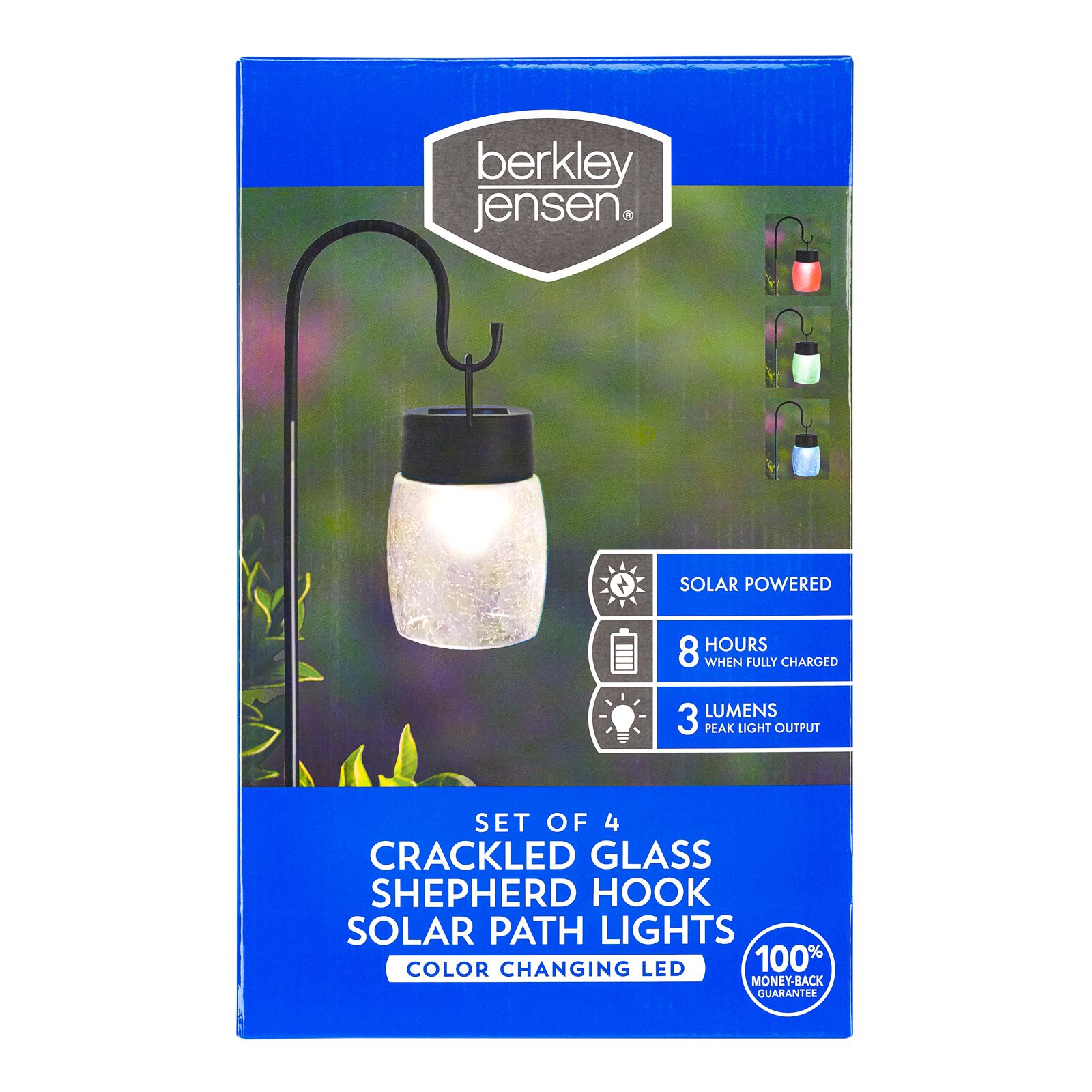 Illuminate your pathway or yard for up to eight hours every night with these solar powered shepherd hook hanging path lights from berkley jensen.